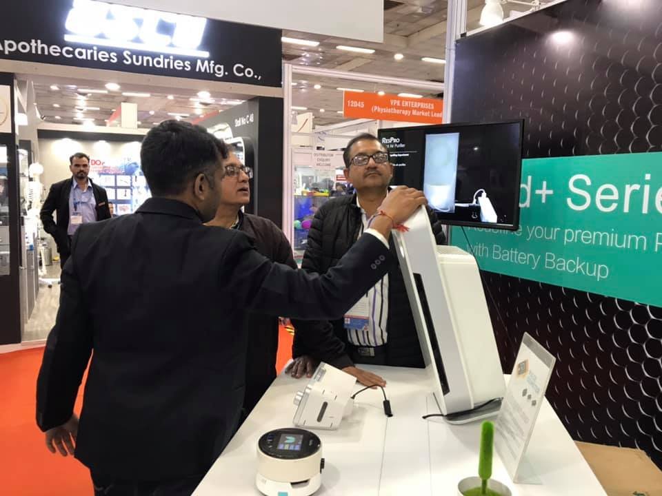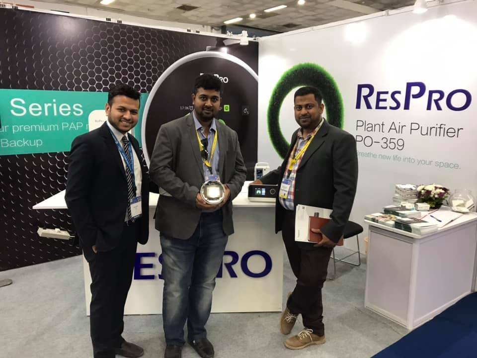 We would like to take this opportunity to thank all our clients and business partners for visiting our stand at this year’s Medical fair India, Delhi 2019. The exhibition gave us the opportunity to launch our Gold+ series of Respro Bipap & CPAP machines with BATTERY backup one of its kind in India and Portable desktop Air purifier.